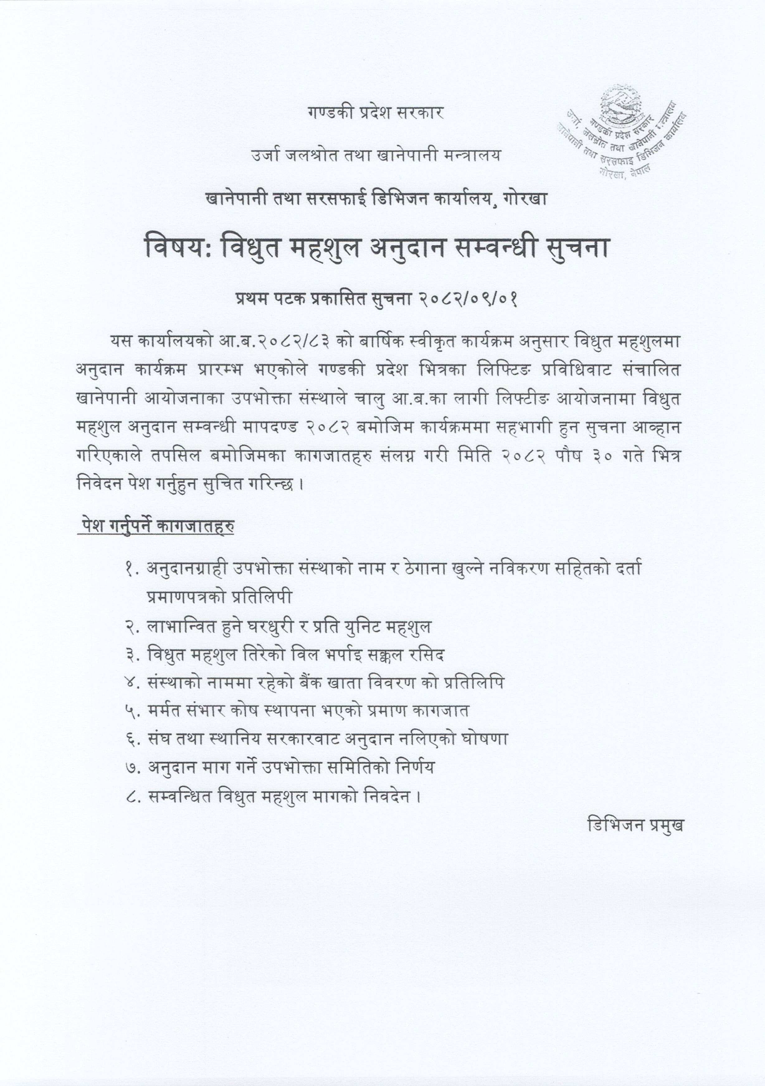© सर्वाधिकार सुरक्षित खानेपानी तथा सरसफाइ डिभिजन कार्यालय